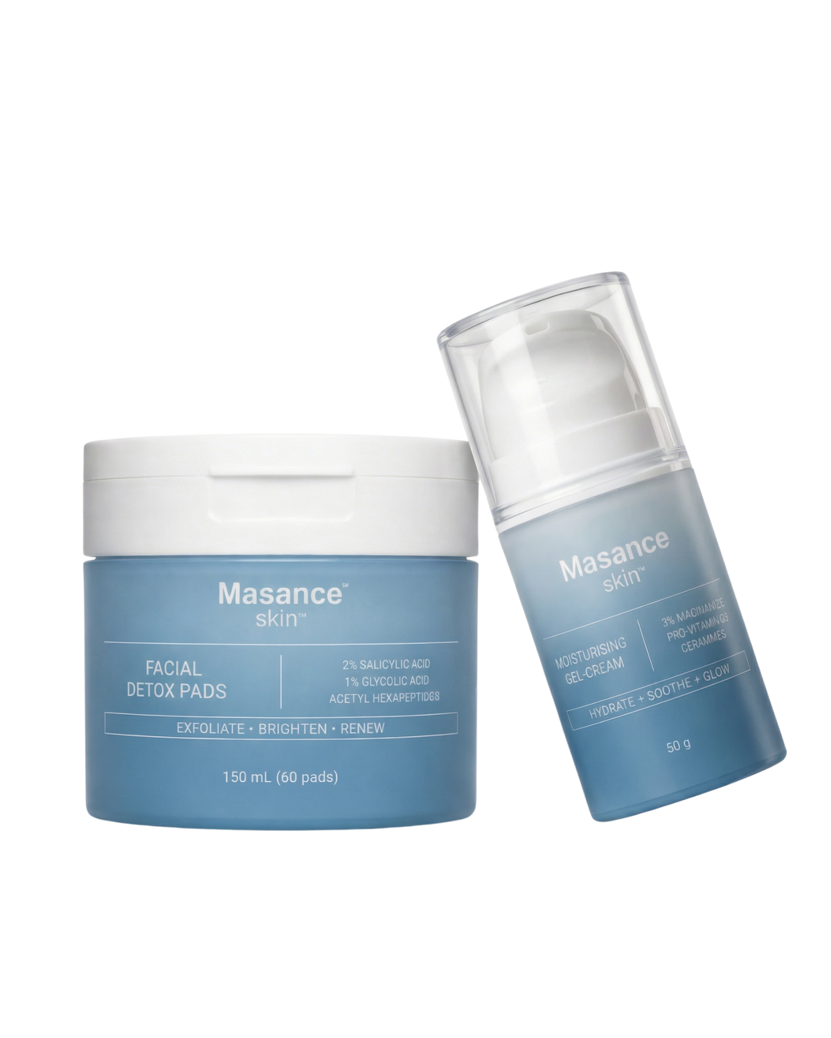 Masance focuses on what your skin actually responds to. Gentle exfoliation to help refresh the look of dull, uneven skin. Followed by hydration to support smoother, more balanced-looking skin.